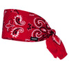 We offer two different widths, Wide and Narrow. Wide is approximately 4.5” to 5” wide and Narrow is approximately 3.5” – 4” wide. However, all our bandanas, whether you purchase the Wide or Narrow size, can be adjusted to your desired width by folding under from the top. Each bandana is approximately 37” long and fits most size heads. The length of the tail when tied depends on the size of the head.